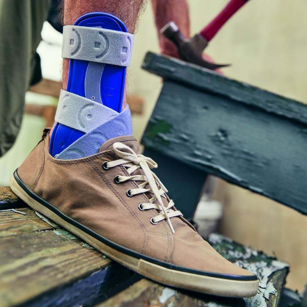 Die MalleoLoc-Schiene besitzt eine schlanke Passform und ist innen weich gepolstert. Eine vorstehende Zunge an der Fußsohle stimuliert deine Fußmuskulatur und wirkt falschen Bewegungen entgegen. Sie wird mit zwei überkreuz laufenden Klettgurten fixiert. Gleichzeitig gibt die MalleoLoc deinem Sprunggelenk Hilfe zur Selbsthilfe: Denn trotz deiner geschwächten Bänder ist es wichtig, dass du aktiv bleibst und die Muskulatur trainierst. MalleoLoc stabilisiert dein Sprunggelenk mit und ohne Schuh, sodass du dich damit im Alltag jederzeit angstfrei und richtig bewegen kannst. Das trägt zu deinem Heilungsprozess bei.